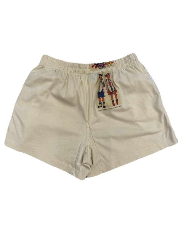 Vintage revamped shorts with side pockets – all shorts are one of a kind – only one – material/fabric is all vintage and is washed . All shorts have slight wear due to the nature of them being made with recycled garments/fabrics.