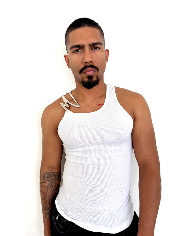 Tank Top Design with silver shell acrylic shoulder attachment.